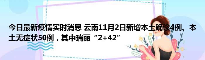 今日最新疫情实时消息 云南11月2日新增本土确诊4例、本土无症状50例,其中瑞丽“2+42”
