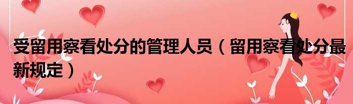 导读 大家好,今天小六子来为大家解答以下的问题,关于受留用察看处分的管理人员,留用察看处分最新规定这个很多人还不知道,现在让我们一起来看