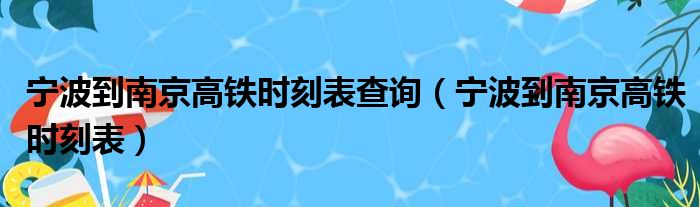 宁波到南京高铁时刻表查询(宁波到南京高铁时刻表)