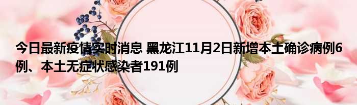 今日最新疫情实时消息 黑龙江11月2日新增本土确诊病例6例、本土无症状感染者191例