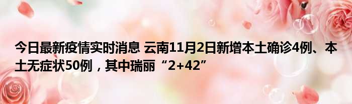 今日最新疫情实时消息 云南11月2日新增本土确诊4例、本土无症状50例,其中瑞丽“2+42”