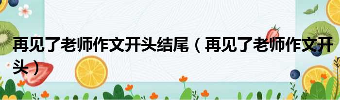 导读 大家好,今天小六子来为大家解答以下的问题,关于再见了老师作文开头结尾,再见了老师作文开头这个很多人还不知道,现在让我们一起来看看吧