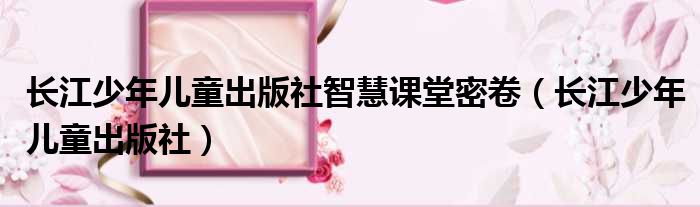 大家好,今天小六子来为大家解答以下的问题,关于长江少年儿童出版社智慧课堂密卷,长江少年儿童出版社这个很多人还不知道,现在让我们一起来看看吧!