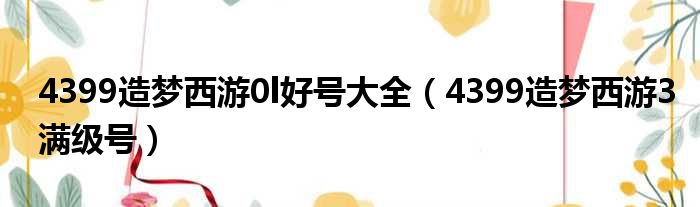4399造梦西游0l好号大全(4399造梦西游3满级号)