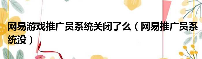 网易游戏推广员系统关闭了么(网易推广员系统没)