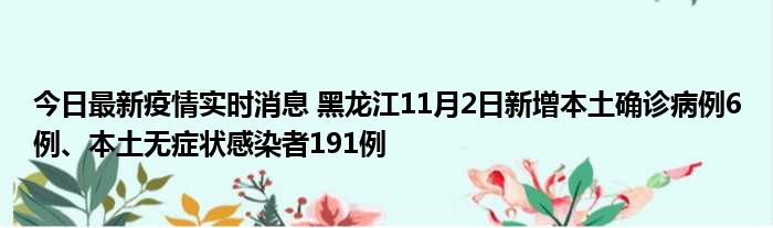 今日最新疫情实时消息 黑龙江11月2日新增本土确诊病例6例、本土无症状感染者191例