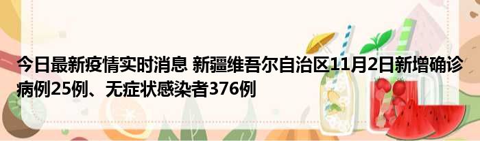 新疆卫健委通报,11月2日0时至24时,新疆维吾尔自治区新增确诊病例25例,新增无症状感染者376例,新增确诊病例治愈出院7例,新增无症状感
