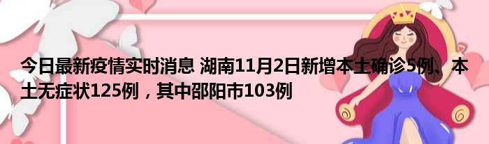 今日最新疫情实时消息 湖南11月2日新增本土确诊5例、本土无症状125例,其中邵阳市103例
