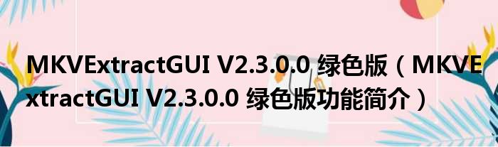 MKVExtractGUI V2.3.0.0 绿色版(MKVExtractGUI V2.3.0.0 绿色版功能简介)