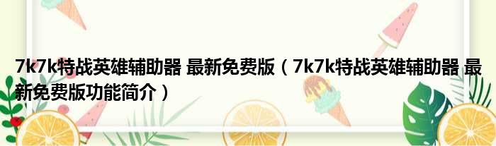 7k7k特战英雄辅助器 最新免费版(7k7k特战英雄辅助器 最新免费版功能简介)