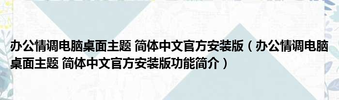 导读 大家好,关于办公情调电脑桌面主题 简体中文官方安装版,办公情调电脑桌面主题 简体中文官方安装版功能简介这个很多人还不知道,小勒来为大