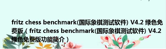 fritz chess benchmark(国际象棋测试软件) V4.2 绿色免费版(fritz chess benchmark(国际象棋测试软件) V4.2 绿色免费版功能简介)