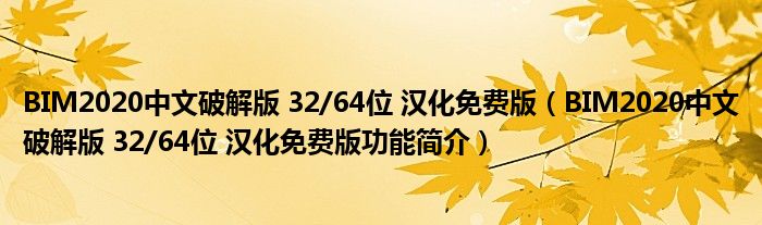 BIM2020中文破解版 32/64位 汉化免费版(BIM2020中文破解版 32/64位 汉化免费版功能简介)