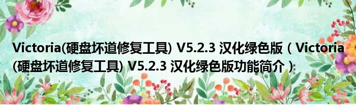Victoria(硬盘坏道修复工具) V5.2.3 汉化绿色版(Victoria(硬盘坏道修复工具) V5.2.3 汉化绿色版功能简介)