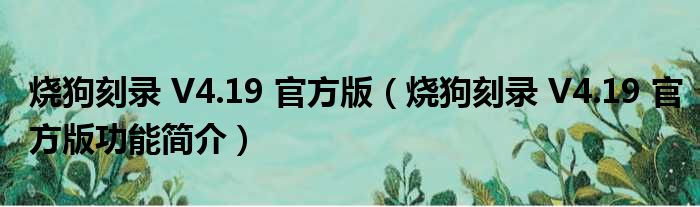 烧狗刻录 V4.19 官方版(烧狗刻录 V4.19 官方版功能简介)