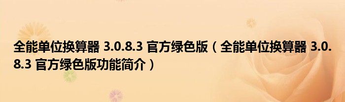 导读 大家好,关于全能单位换算器 3 0 8 3 官方绿色版,全能单位换算器 3 0 8 3 官方绿色版功能简介这个很多人还不知道,小勒来为大家解答以上