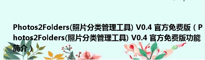 Photos2Folders(照片分类管理工具) V0.4 官方免费版(Photos2Folders(照片分类管理工具) V0.4 官方免费版功能简介)