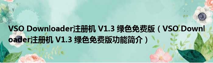 VSO Downloader注册机 V1.3 绿色免费版(VSO Downloader注册机 V1.3 绿色免费版功能简介)