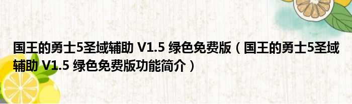 国王的勇士5圣域辅助 V1.5 绿色免费版(国王的勇士5圣域辅助 V1.5 绿色免费版功能简介)