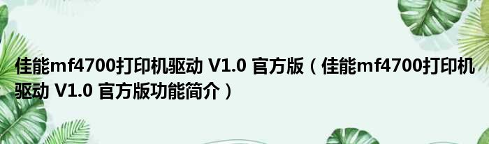 佳能mf4700打印机驱动 V1.0 官方版(佳能mf4700打印机驱动 V1.0 官方版功能简介)