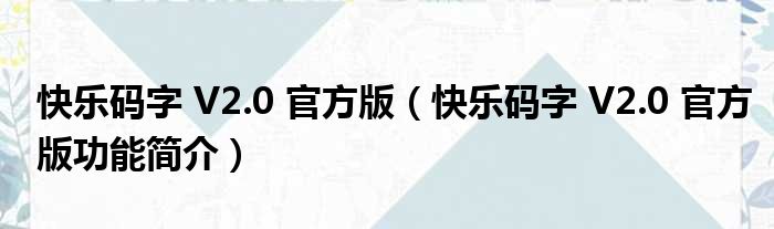 快乐码字 V2.0 官方版(快乐码字 V2.0 官方版功能简介)