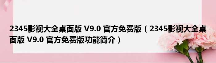 导读 大家好,关于2345影视大全桌面版 V9 0 官方免费版,2345影视大全桌面版 V9 0 官方免费版功能简介这个很多人还不知道,小勒来为大家解答以
