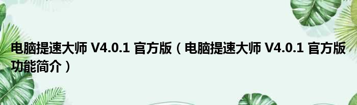 电脑提速大师 V4.0.1 官方版(电脑提速大师 V4.0.1 官方版功能简介)