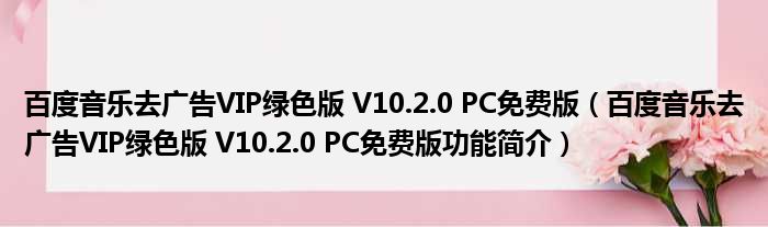 导读 大家好,关于百度音乐去广告VIP绿色版 V10 2 0 PC免费版,百度音乐去广告VIP绿色版 V10 2 0 PC免费版功能简介这个很多人还不知道,小勒来
