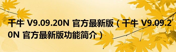千牛 V9.09.20N 官方最新版(千牛 V9.09.20N 官方最新版功能简介)