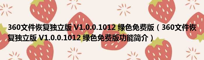 360文件恢复独立版 V1.0.0.1012 绿色免费版(360文件恢复独立版 V1.0.0.1012 绿色免费版功能简介)