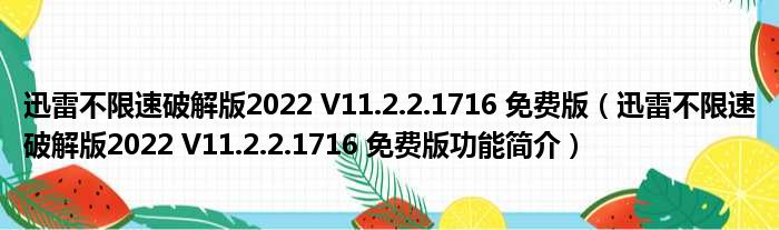迅雷不限速破解版2022 V11.2.2.1716 免费版(迅雷不限速破解版2022 V11.2.2.1716 免费版功能简介)