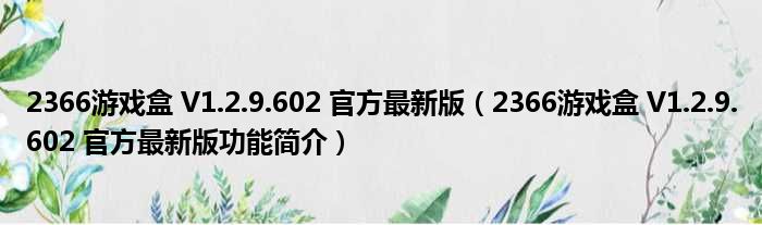 2366游戏盒 V1.2.9.602 官方最新版(2366游戏盒 V1.2.9.602 官方最新版功能简介)