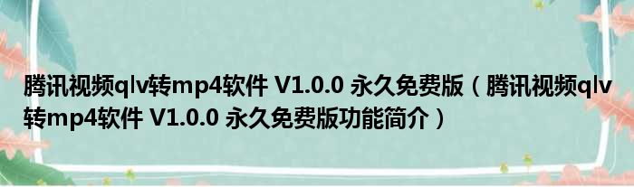 腾讯视频qlv转mp4软件 V1.0.0 永久免费版(腾讯视频qlv转mp4软件 V1.0.0 永久免费版功能简介)