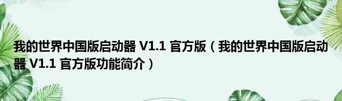 我的世界中国版启动器 V1.1 官方版(我的世界中国版启动器 V1.1 官方版功能简介)