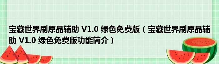 导读 大家好,关于宝藏世界刷原晶辅助 V1 0 绿色免费版,宝藏世界刷原晶辅助 V1 0 绿色免费版功能简介这个很多人还不知道,小勒来为大家解答以
