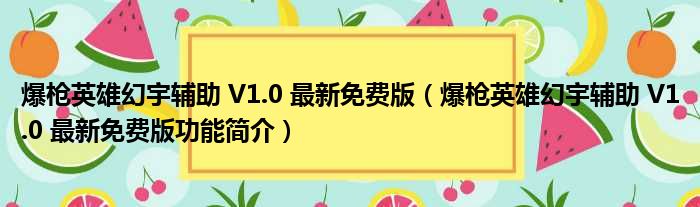 爆枪英雄幻宇辅助 V1.0 最新免费版(爆枪英雄幻宇辅助 V1.0 最新免费版功能简介)
