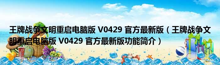 王牌战争文明重启电脑版 V0429 官方最新版(王牌战争文明重启电脑版 V0429 官方最新版功能简介)
