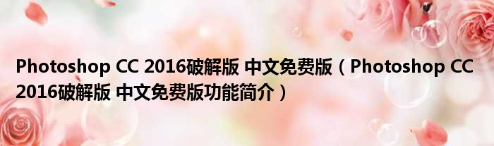 Photoshop CC 2016破解版 中文免费版(Photoshop CC 2016破解版 中文免费版功能简介)