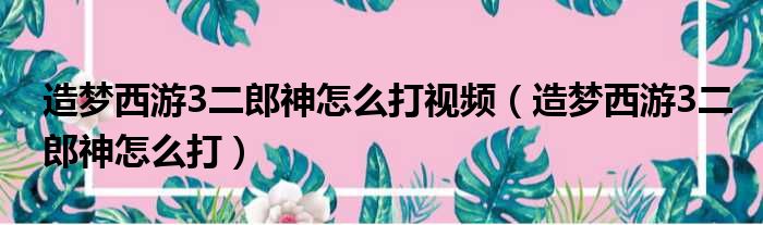 造梦西游3二郎神怎么打视频(造梦西游3二郎神怎么打)
