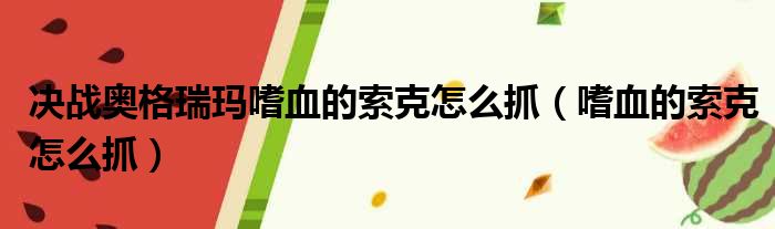 决战奥格瑞玛嗜血的索克怎么抓(嗜血的索克怎么抓)