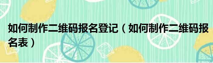 导读 大家好,今天小六子来为大家解答以下的问题,关于如何制作二维码报名登记,如何制作二维码报名表这个很多人还不知道,现在让我们一起来看看