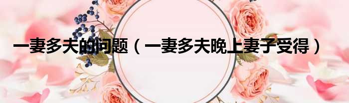 一妻多夫的问题(一妻多夫晚上妻子受得)