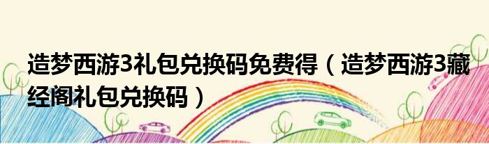 造梦西游3礼包兑换码免费得(造梦西游3藏经阁礼包兑换码)