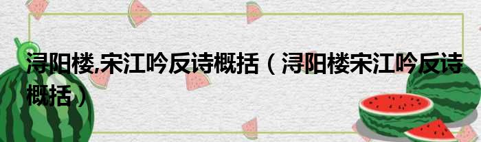 浔阳楼,宋江吟反诗概括(浔阳楼宋江吟反诗概括)