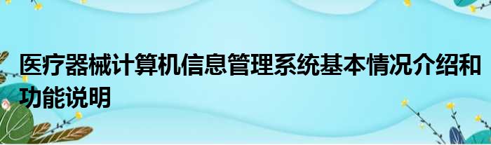 医疗器械计算机信息管理系统基本情况介绍和功能说明