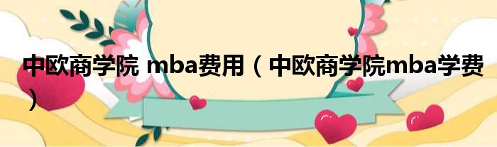 大家好,今天小六子来为大家解答以下的问题,关于中欧商学院 mba费用,中欧商学院mba学费这个很多人还不知道,现在让我们一起来看看吧!