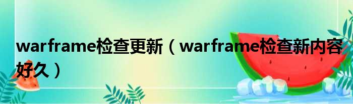 导读 大家好,今天小六子来为大家解答以下的问题,关于warframe检查更新,warframe检查新内容好久这个很多人还不知道,现在让我们一起来看看吧!1
