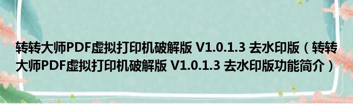 转转大师PDF虚拟打印机破解版 V1.0.1.3 去水印版(转转大师PDF虚拟打印机破解版 V1.0.1.3 去水印版功能简介)