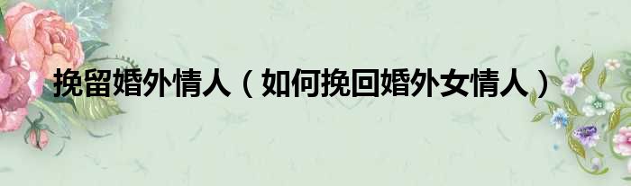 大家好,今天小六子来为大家解答以下的问题,关于挽留婚外情人,如何挽回婚外女情人这个很多人还不知道,现在让我们一起来看看吧!