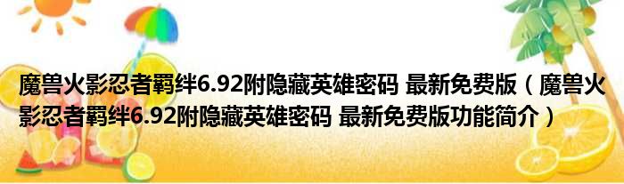 魔兽火影忍者羁绊6.92附隐藏英雄密码 最新免费版(魔兽火影忍者羁绊6.92附隐藏英雄密码 最新免费版功能简介)